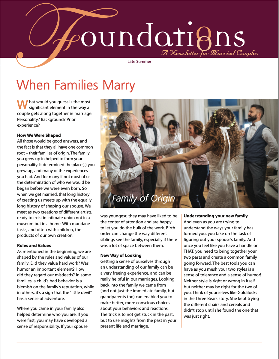 August 2025 Aug 15 Written By Kathy Beirne Foundations Newsletter August 2025 covers Family of Origin Kathy Beirne
