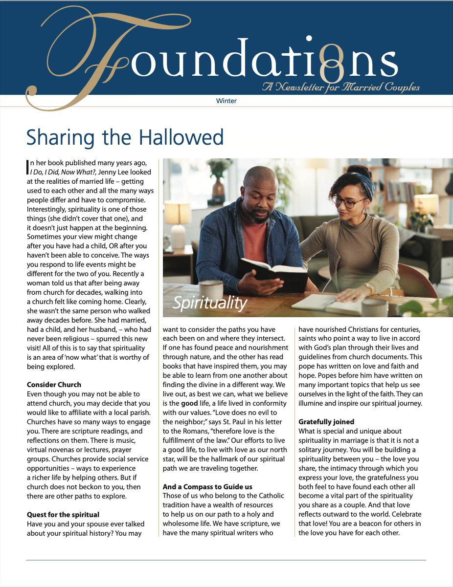 February 2026 Feb 26 Written By Kathy Beirne A couple’s spiritual life is hallowed ground. Kathy Beirne